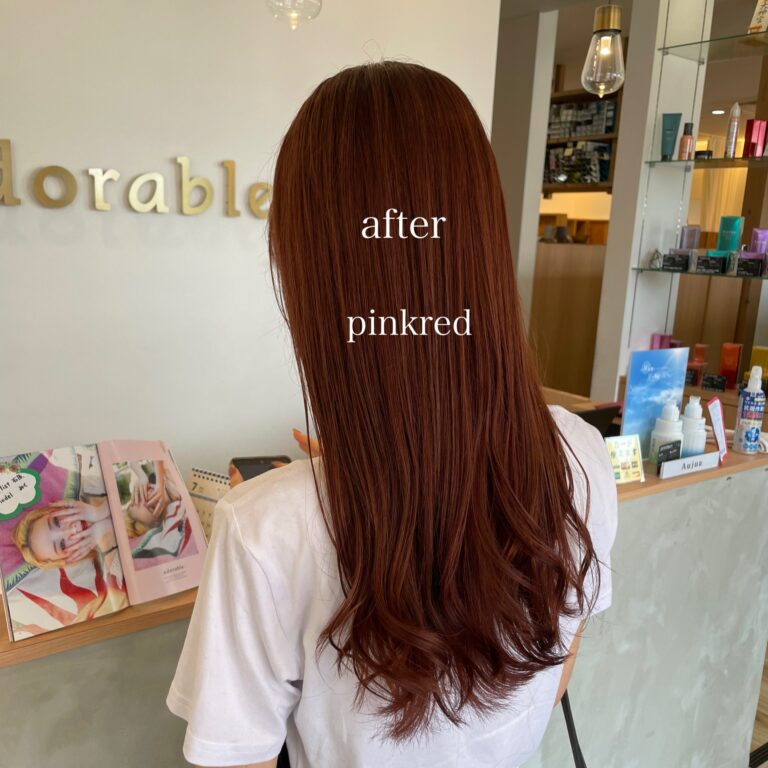 ピンクにほんのりレッドを混ぜて深みのあるピンクレッドに染めました。