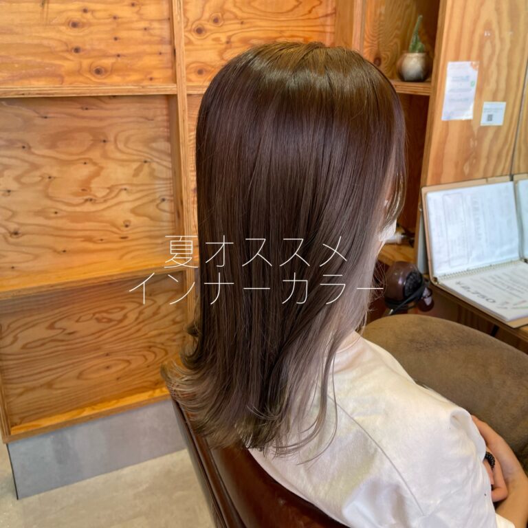インナーカラーは淡いグレージュに染めて、全体のカラーはインナーに合わせアッシュベージュに◎