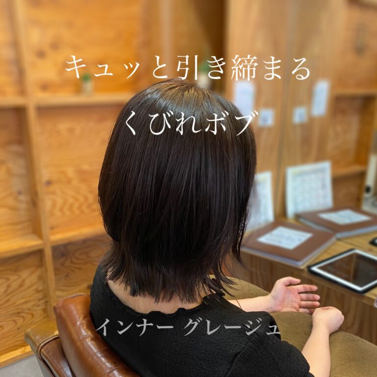 前回インナーをブリーチして、根元が6cm以上伸びた状態に毛先もばらつきがあったので、インナーを復活させて首元がすっきりとするくびれボブに仕上げました♪