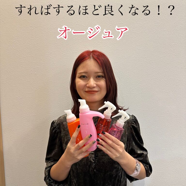 オージュアは全部の商品に毛髪補修成分と毛髪保護成分が入ってるので使えば使うほど髪質が良くなるんです!!